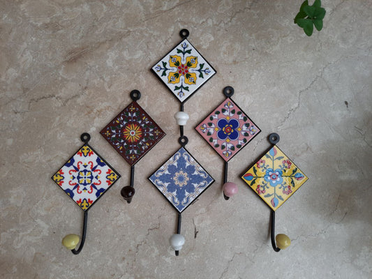 Blue Pottery hooks (3 x 3 x 7.5 inches) - Set of 4